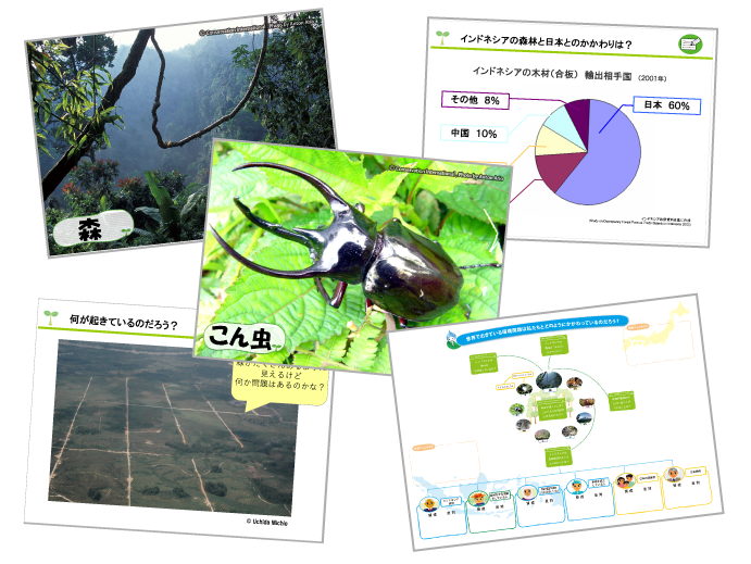 世界の森林問題をテーマに、国際理解や他者理解を目的とする授業や、私たちの生活と環境問題の関連に焦点をあて自分にできることについて考えを深めていく授業など、さまざまな展開が可能です。