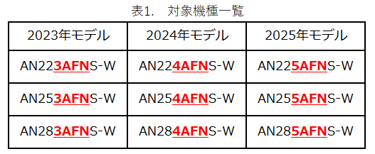 2025年1月より、2023、2024年モデルのFNシリーズのルームエアコンにおいて、