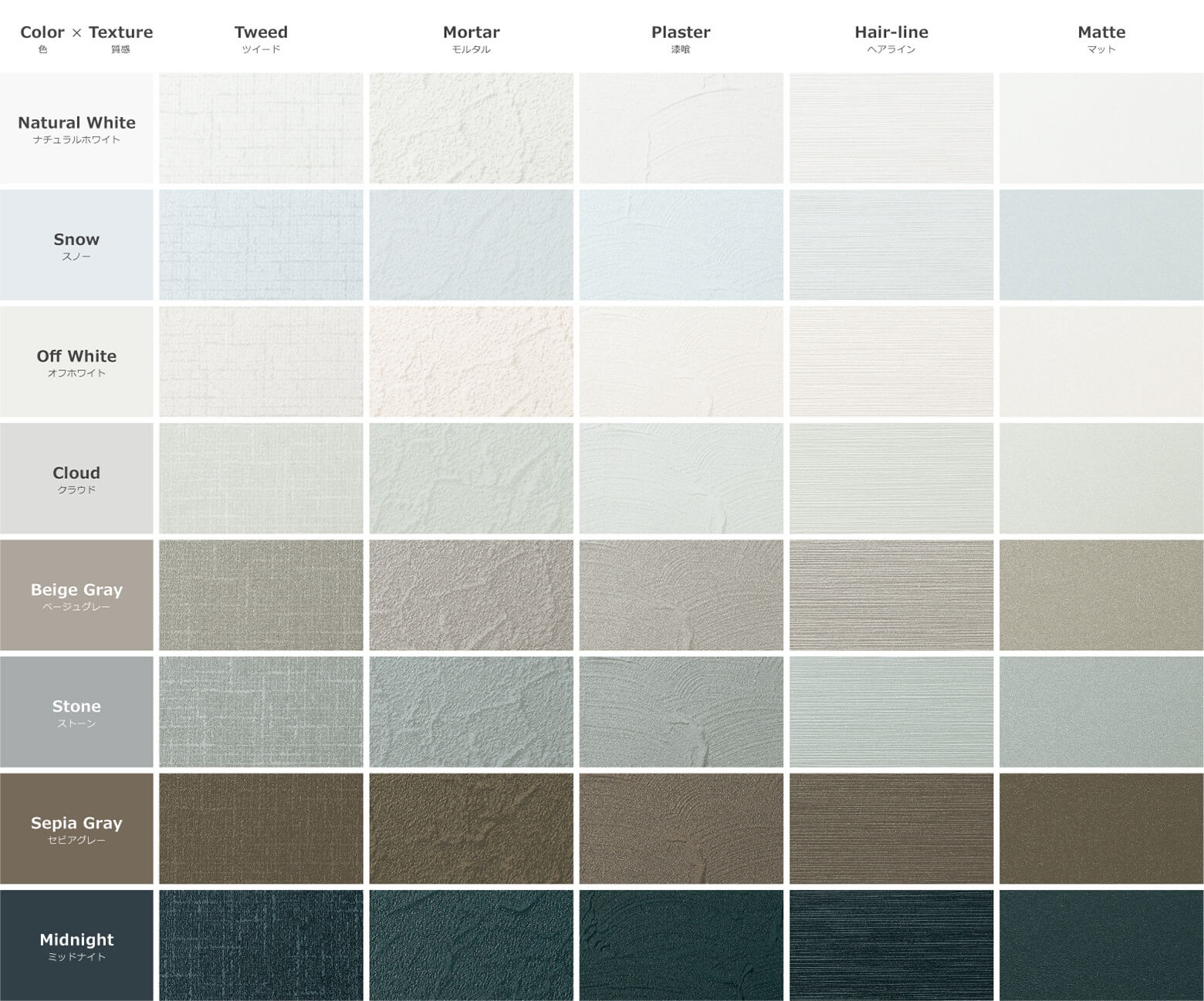 厳選されたカラーとテクスチャーを自由に組み合わせることが可能なライン