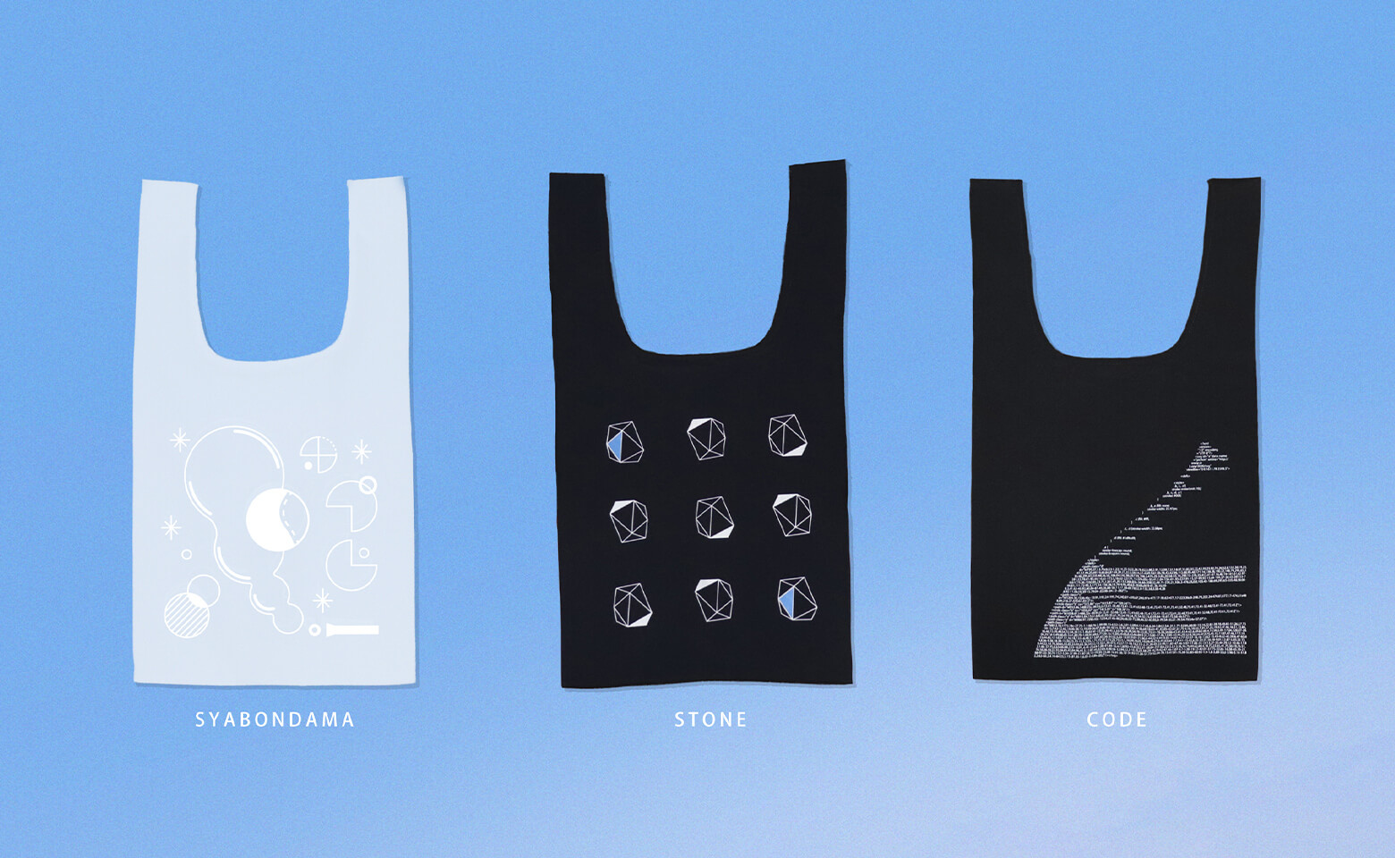空気は目には見えませんが、誰にとってもなくてはならない存在です。その不可視の存在をどうすればデザインとして可視化できるのか。それを表現しようとしたのが「SHABONDAMA」です。白い布地に白いインクで模様を印刷し、バッグにものを入れた時にだけ柄が浮かび上がる。まさに空気のように、普段は見えないけれど確かにそこにあるようなデザインが姿を現す仕掛けです。