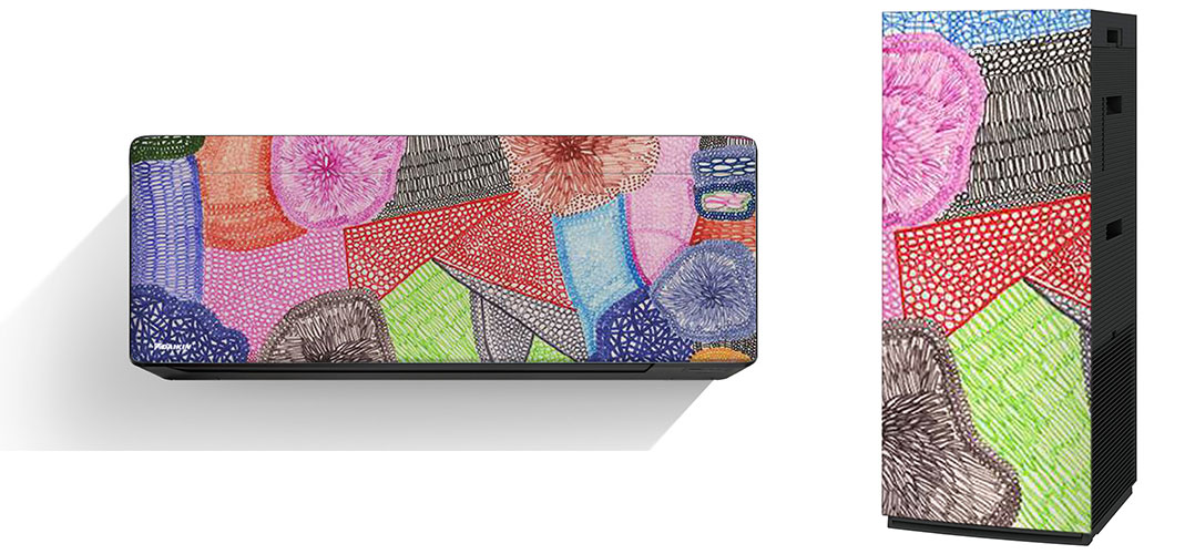 今回、「ART」では“異彩を、放て。”をミッションに、障害のイメージ変容と新たな文化の創出をめざすクリエイティブカンパニーの株式会社ヘラルボニー(以下、ヘラルボニー)とコラボレーションしました。ヘラルボニーが掲げる“障害のイメージ変容を目指す”というビジョンとダイキンの『The Art Line』に込めた、家電のイメージを変え、“アートを選ぶようにエアコンを選ぶ新たな考え方を創っていきたい”との想いが合致し、ヘラルボニーがライセンス契約を結んでいる4名の異彩を放つアーティストの作品を採用しました。