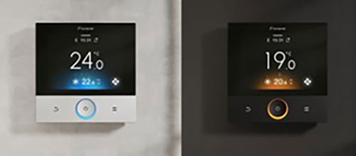 このフルカラータッチリモコンは、直感的な操作性を追求し、物理ボタンとタッチパネルを用途に応じて最適に使い分けた構成が特長である。色でモードを示すインターフェースに加え、画面下部に設けられた独立した操作バーにより、操作中・待機中いずれの状態でも視認性と使いやすさを確保している。直線を基調とした清潔感ある造形は、欧州のホテルやオフィス空間にも自然に馴染み、コンパクトながらも上質な存在感を放つ。省電力性とユーザビリティの両立も含め、実用性と品位を兼ね備えた完成度の高いデザインである。