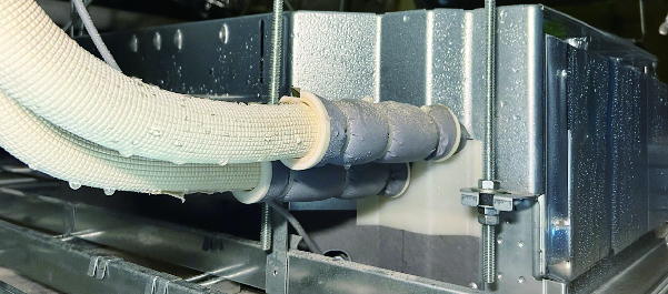 結露を抑制するには、機器を取り外して断熱処理を施す必要があり、費用と手間が大きくかかっていることが課題でした。