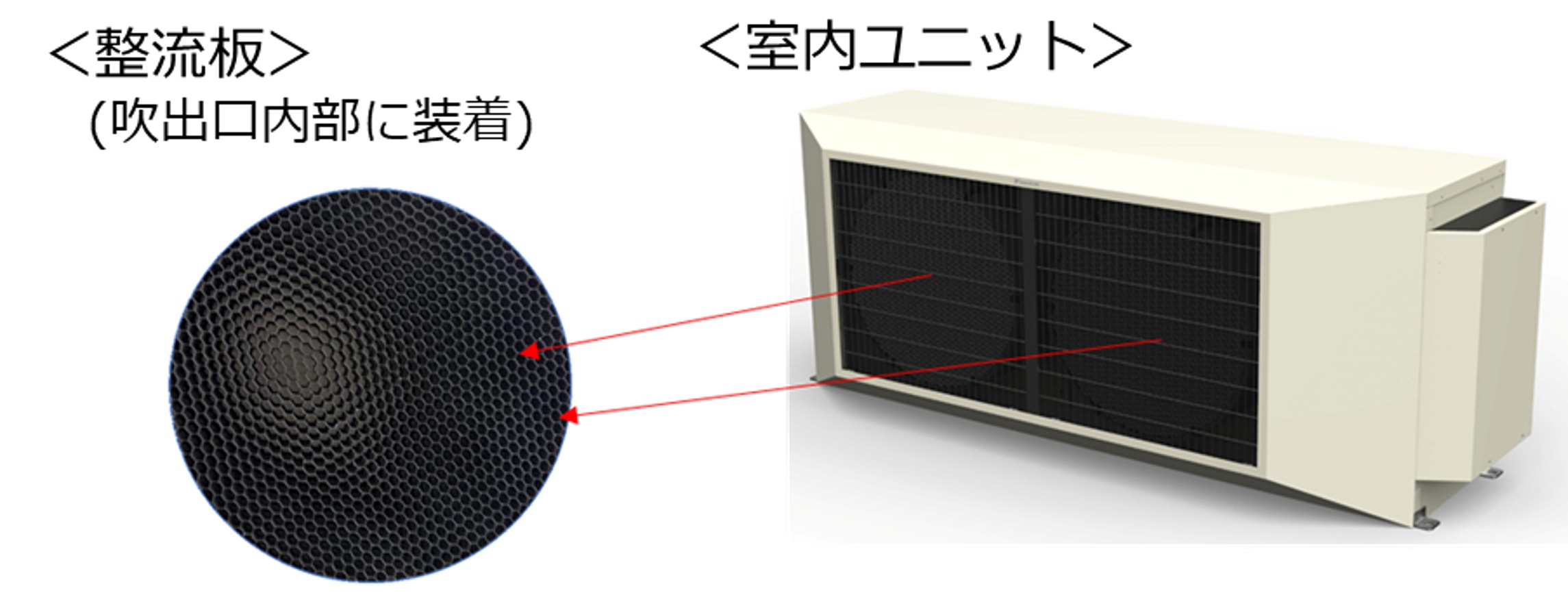 猛暑の深刻化や労働環境改善のニーズを背景に、業務用空調には熱中症対策や省エネ、安全性への対応が求められています。このような中、工場・倉庫・整備場、体育館などの大空間向け空調では、設置場所の制約や連携出来る室外機が限られているなどの課題があり、十分な風量の確保に加え、設置方法の柔軟性が求められていました。