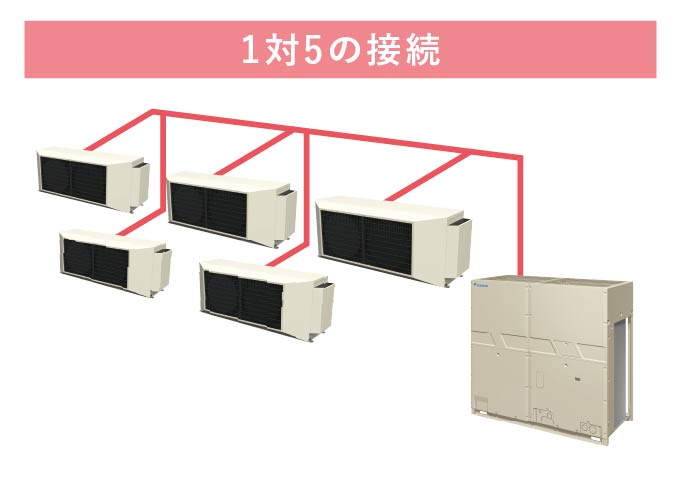 工場や倉庫では、製造機械の配置やダクトの取り回しによって空調機の設置場所が限られる中、マルチジェットは、壁掛・天吊・床置の各設置方式に対応しています。さらに、ビル用マルチエアコン「VRV7」や店舗・オフィスエアコン「machiマルチ」と組み合わせて使用できるため、既存のマルチ空調システムを活かし、現場の規模や設置条件に応じた無理のない導入を可能にします。