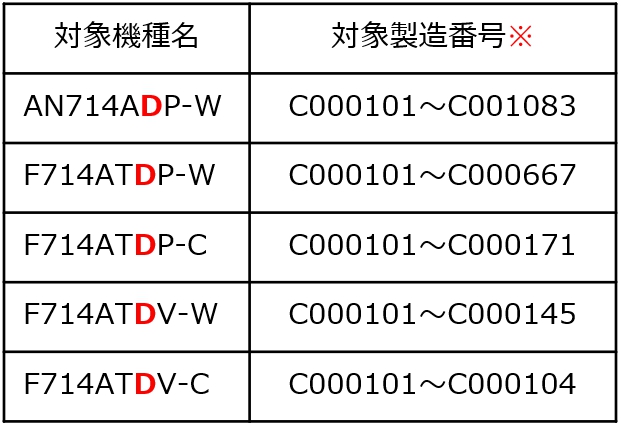 ※ただし、一部製造番号については、対策済みの製品も含まれます。