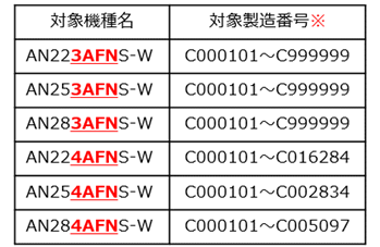お客様に安心してご使用いただくため、対象となる製品の不具合箇所の無償点検修理を実施させていただきます。