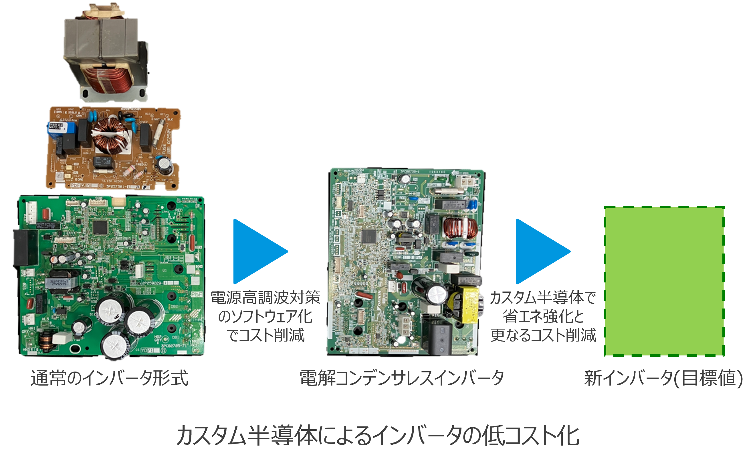 一層の省エネとコストダウンを目指してインバータ用の独自マイコンを開発