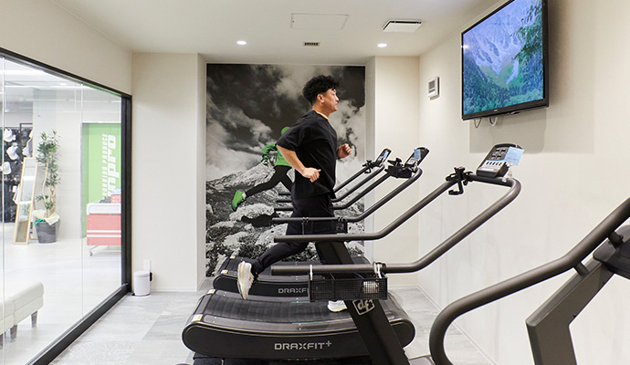 導入の決め手は、やはりダイキンという世界的なブランドの安心感と日本製ならではの信頼性です。他社はサイズの大きな海外製が多く、メンテナンスや設置性に不安が残りましたが、OXORAはコンパクトで設置が容易。さらに曜日ごとの運転設定やタイマー機能があり、操作性にも優れています。何かあった時のサポート力も含めて、「使い続けられる安心感」が最終的な決め手になりました。ランニングショップの中に低酸素トレーニング施設を導入し、筋膜リリースなどのケアも同じフロアで行っているため、お客さまの悩みや相談に乗りながらトータルなサポートができています。